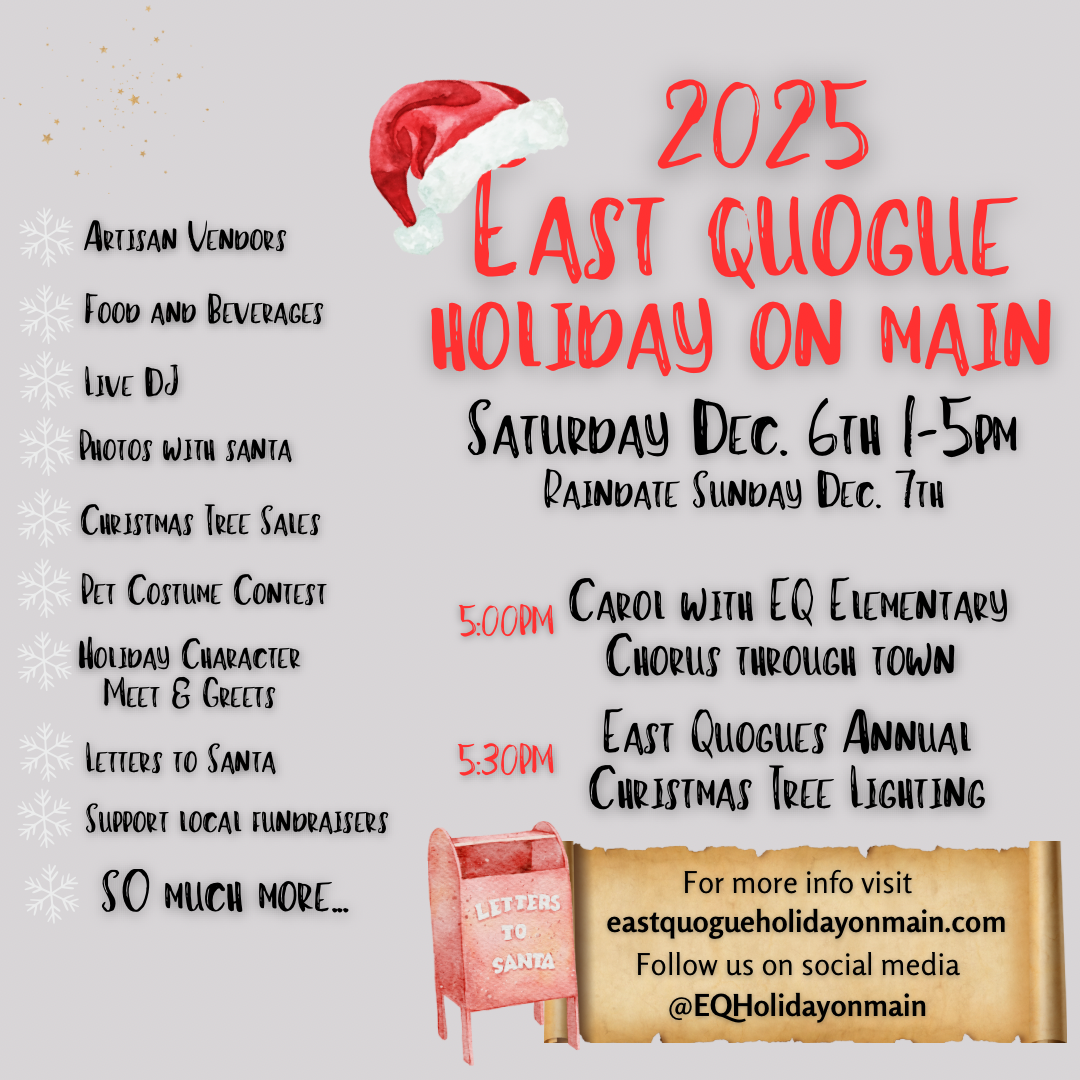 EAST QUOGUE HOLIDAY ON MAIN SATURDAY, DECEMBER 6th 1-5 PM